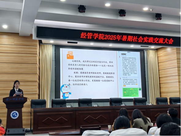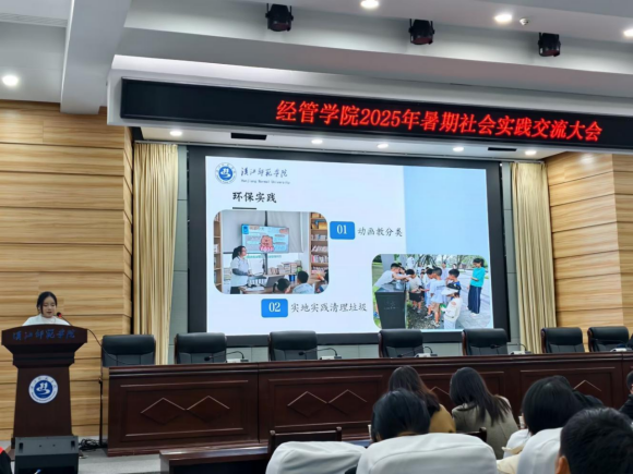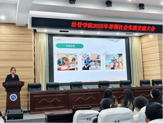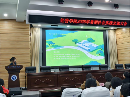 10月20日晚,经管学院暑期社会实践交流大会在崇文楼C101顺利开展。经济与管理学院党委书记陈爱梅、副院长杨新东、学工办主任李亚迪、部分教师与230名2025级新生参会,共话实践收获。