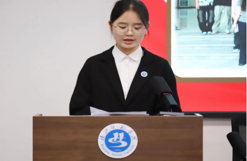 上届学生会主席团成员成瑶瑶作年度工作报告,系统梳理了过去一年学生会围绕思想引领、学风建设、志愿服务等方面取得的成果。